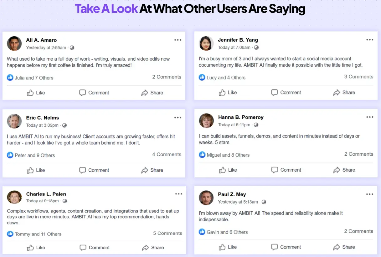 Let’s take a look at what testimonials and early users said about the Ambit AI app: